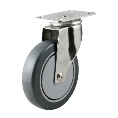 不锈钢活动孔顶带一体方向刹灰色TPR包灰色PP双踏板医用脚轮