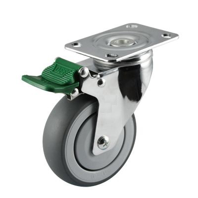 不锈钢活动平底带一体方向刹灰色TPR包灰色PP双踏板医用脚轮