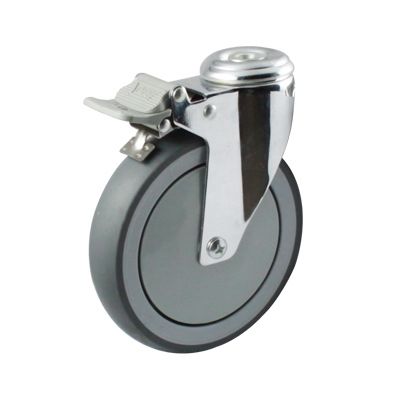不锈钢活动孔顶带一体方向刹灰色TPR包灰色PP双踏板医用脚轮