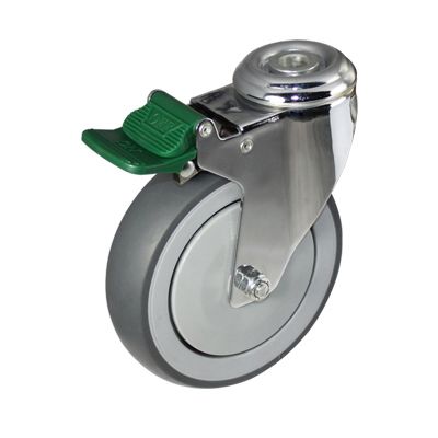 不锈钢活动孔顶带一体全刹灰色TPR包灰色PP双踏板医用脚轮