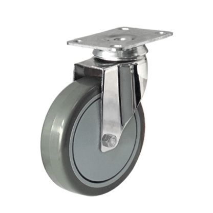 不锈钢活动孔顶带一体方向刹深灰色TPR包灰色PP脚轮