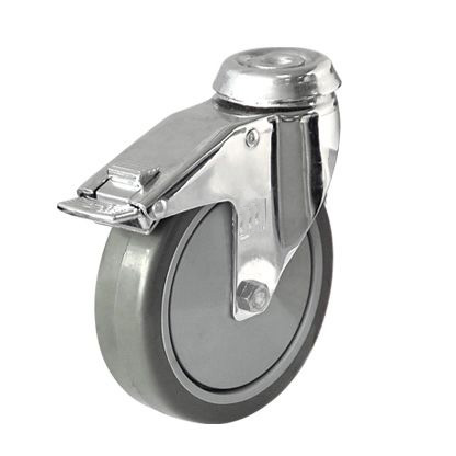 不锈钢活动孔顶带一体全刹灰色PU包灰色PP脚轮