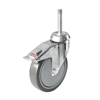 镀铬活动丝杆带一体全刹灰色PU包灰色PP脚轮