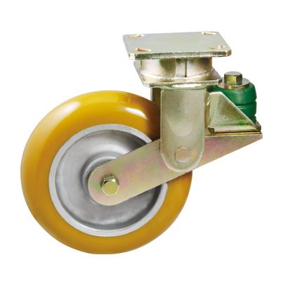 活动平底黄色圆顶PU包铝芯防震脚轮