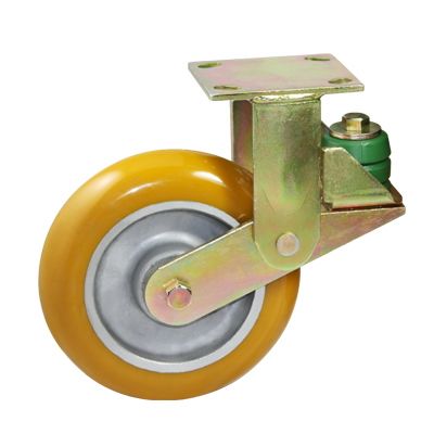 固定平底黄色圆顶PU包铝芯防震脚轮